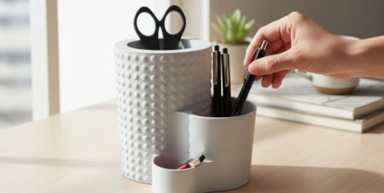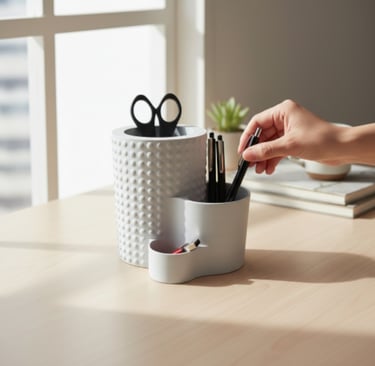 Oggetti da scrivania di alta qualità! La bioplastica ecologica offre un aspetto magnifico e una funzionalità senza compromessi. Adoro il design minimalista di Minura.